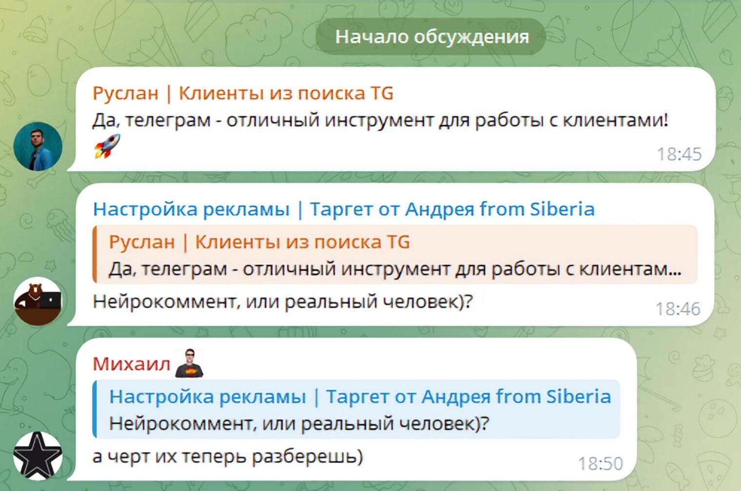 Ты заходишь в тематические чаты или обсуждения, пишешь умные комментарии от имени канала. Главное — не перегнуть палку, иначе полетишь в бан с позором.