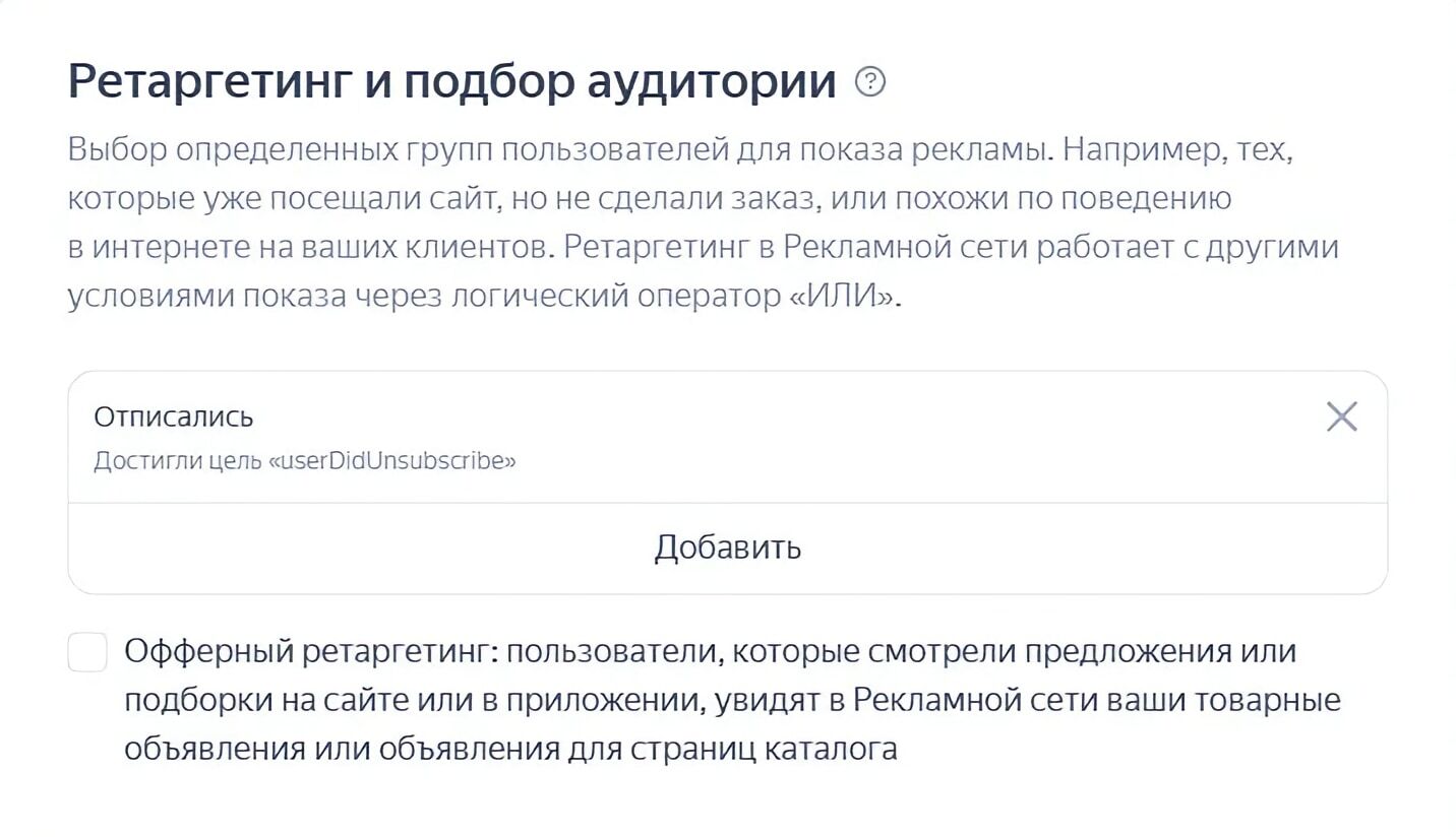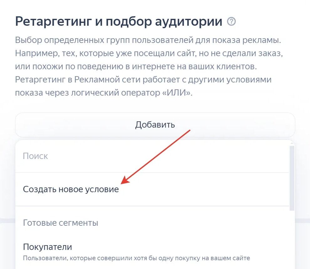 В рекламной кампании найдите «Ретаргетинг и подбор аудитории»: