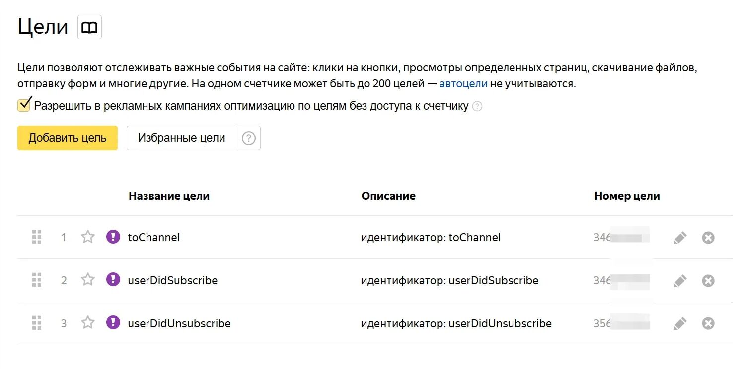 Откройте раздел с настройками целей. Вы увидите цель с названием userDidUnsubscribe.