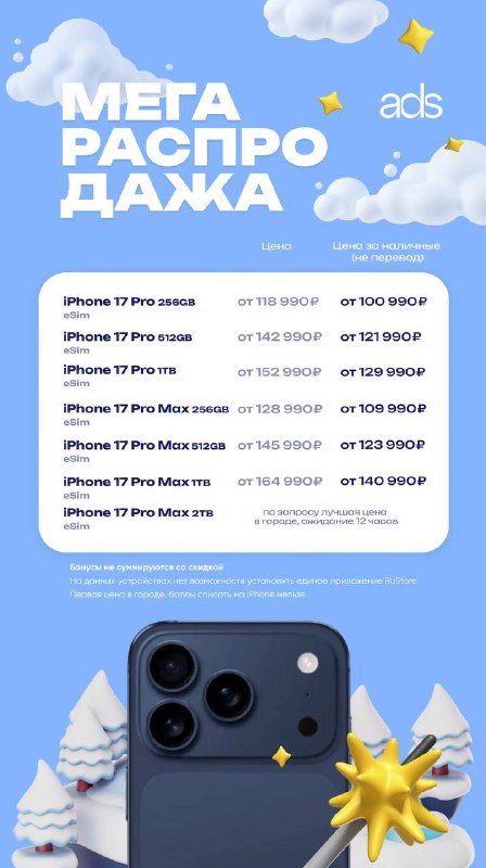 ✅ СИТУАЦИЯ С ЦЕНАМИ СТАБИЛИЗИРОВАЛАСЬ Пишите в отдел продаж: @ADSStoreSeller 📩 Укажите: — модель iPhone — объём памяти Ответим по наличию и стоимости💙