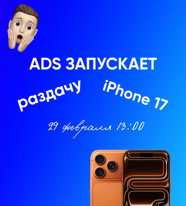 и еще кое-что… МЫ РЕШИЛИ ПОДАРИТЬ IPHONE ТЕМ, КТО ПРИДЕТ В ADS🎁 КАЖДОМУ, КТО ПРИДЁТ К НАМ В МАГАЗИН😱 📍 Столбова 1/3 🗓 29 ФЕВРАЛЯ 2026 ГОДА ⏰ В 13:00 и это не розыгрыш, никаких скрытых условий -