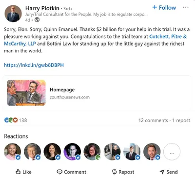 👋Юристы Илона Маска добиваются отвода судьи из-за лайка в LinkedIn Адвокаты из Quinn Emanuel подали ходатайство об отводе судьи Канцлерского суда Делавэра Кэтлин Маккормик после того, как она «лайкн