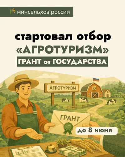 ❗ Стартовал конкурс на грант «Агротуризм» от Минсельхоза России Минсельхоз объявил отбор проектов развития сельского туризма на получение грантов для реализации в 2027 году (плановый период до 2029 г
