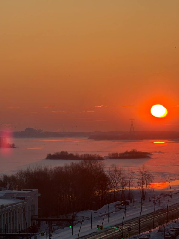 ☀️ А у нас в Нижнем вот такой огненный шар появился сегодня над Волгой Кстати, сегодня облачно ☁️ и пойдет снег ❄️ Утро -4 ☁️, день -1 ❄️ И только ночь субботы будет жаркой 🔥 Доброе утро ☀️ друзья