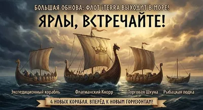 🌎iTerra Глобальное обновление! 📢Система Флота- расширили возможности навигации! Теперь в iTerra доступно 4 типа судов с разной специализацией: 1️⃣Рыбацкая лодка: Базовая добыча рыбы. (0 🐟 / 6ч