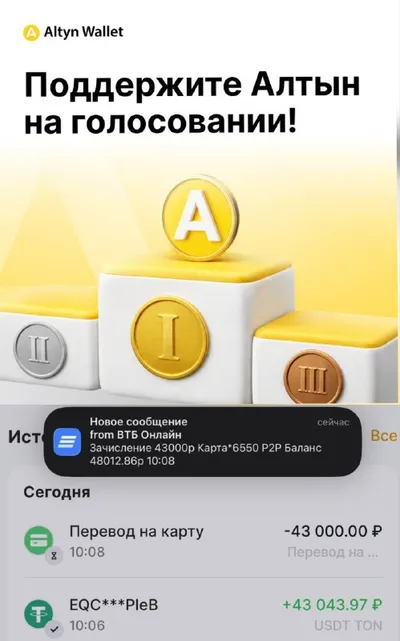 🏆Altyn Wallet номинирован на премию Blockchain Life Awards 2026. ✔️ Осталось сделать два простых шага: 🟠 ШАГ 1: Голосуй в категории «Крипто-обменник года» — ССЫЛКА 🟠 ШАГ 2: Голосуй за «Цифровое