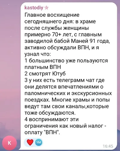 Вон, тож прикольно. Хроники пятого года запретов иностранных сервисов. Думаю, ещё через годик-другой те же старушки будут вместо вязания – прокси мастерить на обход, белых списков. И в церквях на флеш