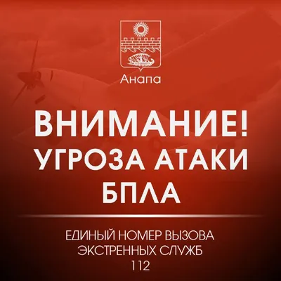 📢Внимание! В Анапе вновь объявлена угроза атаки БПЛА - Сохраняйте спокойствие. Ждите отмены сигнала опасности, - говорится в сообщении мэрии Анапы. Единый телефон оперативных служб - 112. Новости