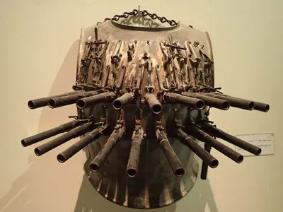 Что-то из Вархаммера... 19-ствольная кираса со складными пистолетами первой четверти XIX века.