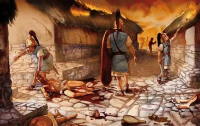 Уничтожение римлянами оппида Ирулеги. Серторианская война, 80 - 72 года до н.э. Оппид (укрепленное поселение) Ирулеги располагался на территории северной Испании и был населен племенем васконов (возм