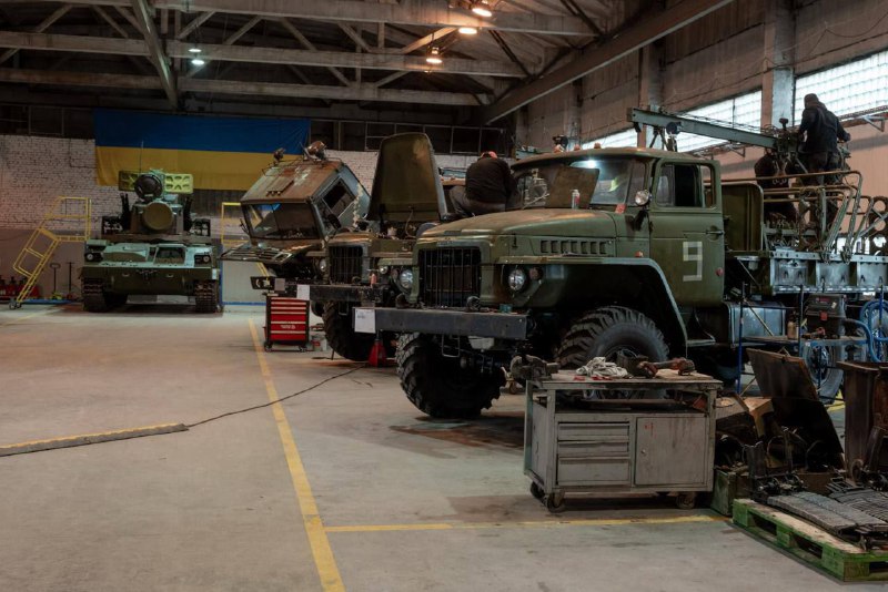 #Артиллерия_противника #Т_З_М ТЗМ 2Ф77 из состава комплекса ЗРПК «Тунгуска» на шасси Урала 375 на снимках британского завода по ремонту вооружения и военной техники, размещённого на Западной Украине.