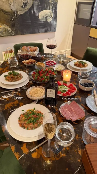 Наш пятничный family dinner, делюсь сегодня 🌱 В меню ↩️ 🌟 Фунчоза с говядиной и овощами в устричном соусе [ Рецепт будет тут ] 🌟Страчателла с томатами 🌟Редис & сливочное масло - закуска к шампа