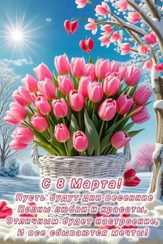 Милые девушки,женщины, поздравляем вас с 8 Марта! Желаем вам вечной красоты, нежности и огромной любви. Пусть у вас сбываются мечты, а каждый новый день приносит только радость и улыбки! А кто хочет