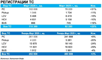 Авторынок России в первом квартале: восстановление есть, но только в одной полосе По данным «Автостат Инфо», март 2026 года показал, что рынок новых транспортных средств заметно оживился, тогда как вт