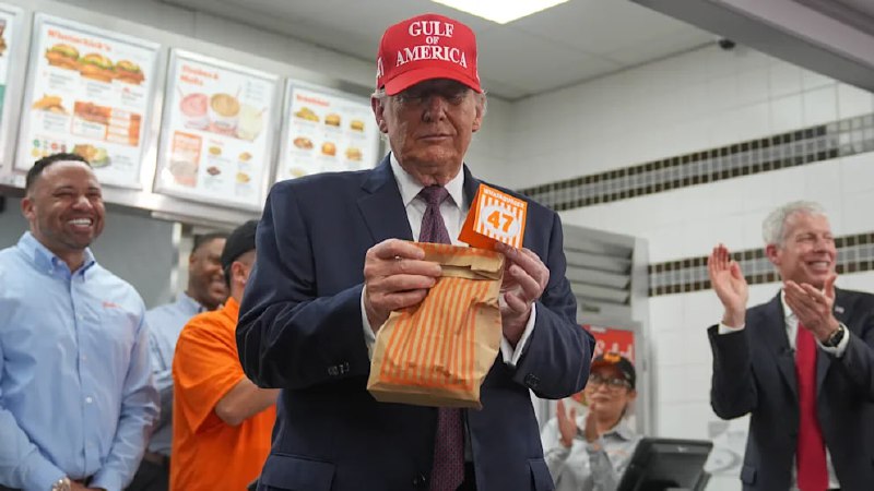 За несколько часов до удара по Ирану Трамп отведал бургеры в Техасе В 2:30 по местному времени президент США Дональд Трамп в видеообращении объявил об американском военном ударе по Ирану. Всего за не