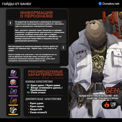 🔥Билд-гайд на Бена в дд Актуально для обновления 2.7 🎸Рекомендуемые характеристики Крит.шанс: ±75% (в бою) Крит.урон: 140+ Сила атаки: 3000 🖼Больше актуальных гайдов вы можете найти в закреплённ