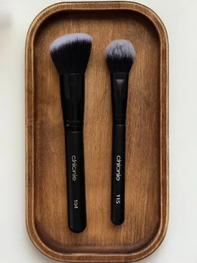С этими кистями макияж как у визажиста 🤌🏼 Любимые кисти от Chicnie с мягким синтетическим ворсом💝 Они легко растущевывают сухие и кремовые продукты, не «забирают» в себя много ⭐️Chicnie №104 – бо