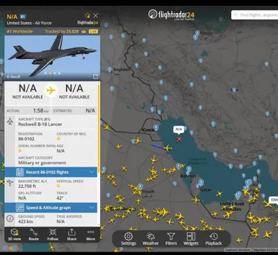Такого еще не было в истории современных войн! ВВС США настолько пренебрегают возможной угрозой от остатков ПВО Ирана, что бомбардировщики B-1B Lancer не отключают транспондеры на подлете к Персидск