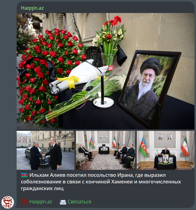 Госполитика... Израиль всё таки друг, товарищ и говорить, что они убили Али Хамении нельзя. Скончался... А как он скончался они ни словом, ни духом. Алиев, судя по всему, успешно перенял повадки Эр