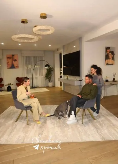 А в такой обстановке Павел Прилучный давал интервью об отношениях и расставании с Агатой. Комната завешана портретами нынешней супруги Зепюр Брутян. И для надежности за плечо держала 😁