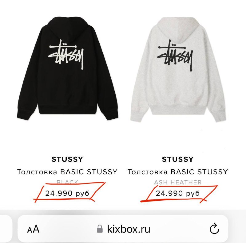 Наблюдения G и команды👀 Делимся: На фото представлены цены на официальном сайте Stussy. Быстренько посчитали по сегодняшнему курсу💲- футболка стоит ~4.150р , толстовка ~12.000р. Наши уважаемые и