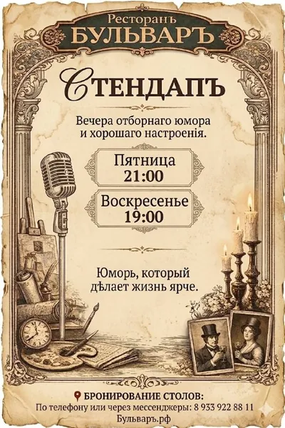 Воскресенье с ржуликами в ресторане БульварЪ Уже сегодня комики и комикессы с ТНТ, СТС, LABELCOM и других популярных YouTube проектов расскажут свои новые и лучшие шутки в приятной атмосфере! Сбор