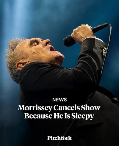 Моррисси отменил концерт, потому что хотел спать. Перед выступлением в Валенсии на его сайте начали появляться странные сообщения. Сначала он написал, что два дня добирался по дороге и приехал в отел