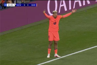 4:19 / 4:20 от Рональда Араухо. Хотел потянуть время (судья этого не позволил), а потом не успел вернуться в позицию из-за чего Харви Барнс остался в штрафной в полном одиночестве. @CaptainFint 🟢