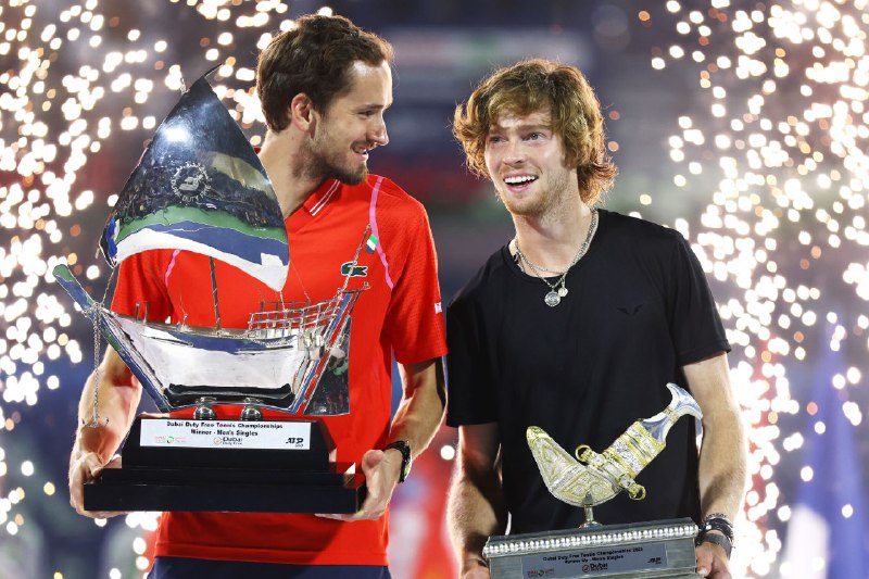 ⚡️🐻 Медведев — чемпион турнира ATP-500 в Дубае Таллон Грикспор снялся с финала из-за травмы Это 2️⃣3️⃣-й трофей в карьере россиянина Даниил впервые сумел выиграть титул в одном и том же городе �