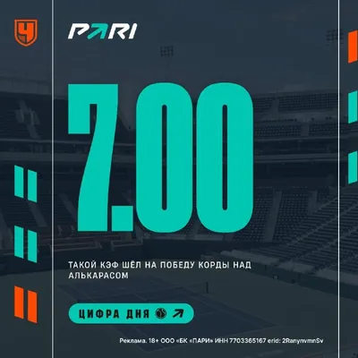 Майами снова полон сенсаций Карлос Алькарас неожиданно вылетел в 1/16 финала «Мастерса», проиграв Себастьяну Корде. В PARI коэффициент на поражение первой ракетки мира составлял 7.00 😱 В 1/8 финала
