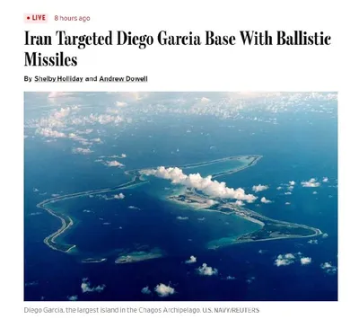 Иран впервые атаковал американскую военную базу за 4 тысячи км от своих границ - на острове Диего-Гарсия в Индийском океане, сообщает WSJ. По данным газеты, Тегеран запустил две баллистические ракеты