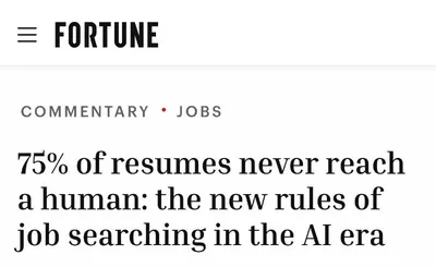 75% резюме отсеиваются нейросетями ещё до того, как их увидит рекрутер 🐛 Алгоритмы автоматически отбраковывают документы, в которых отсутствуют ключевые слова для вакансии или оформлены нестандартн