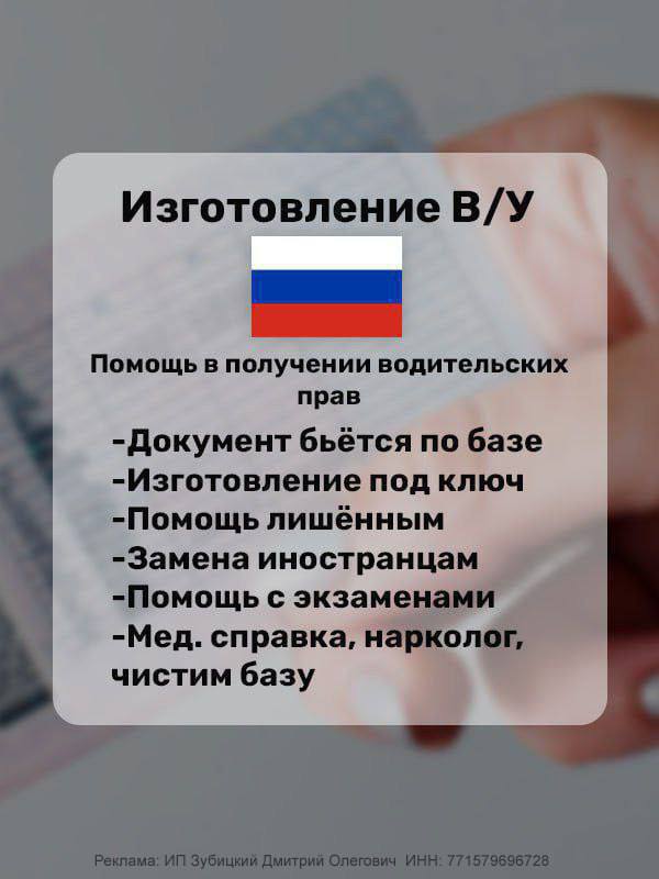 🚘 Водительское удостоверение🚘 Предоставляем: 📌 Водительское удостоверение с нуля, все категории. 📌 Помогаем лишенным прав. 📌 Замена и изготовление водительского удостоверения иностранцам. 📌 П