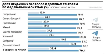 💬 Telegram заблокирован на 80% В отдельных федеральных округах этот показатель близится к 90%.