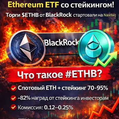 🔥 BlackRock запустил Ethereum ETF со стейкингом — что это значит? Сегодня на Nasdaq стартовали торги #ETHB — iShares Staked Ethereum Trust от BlackRock. ❓Что такое #ETHB: Держит spot ETH + стейкае