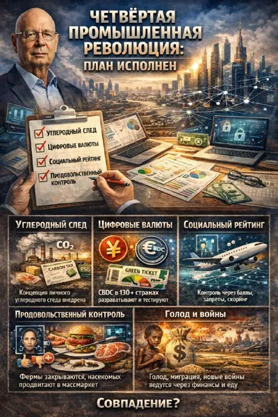 🔥В 2016 году Клаус Шваб опубликовал «Четвёртую промышленную революцию». Её воспринимали как абстрактный манифест Давоса. Сегодня это читается как план с отметками о выполнении. ❓Разберём по пунктам: