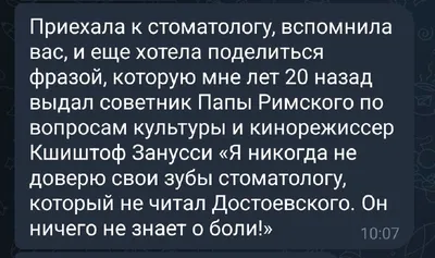 Вы ж мои хорошие. Да:) я теперь понял, что мои скромные успехи в стоматологии, связаны с тем, что я довольно рано прочитал "Братьев Карамазовых".