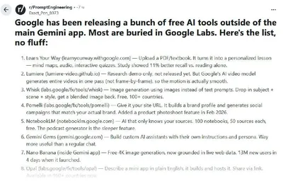 Реддиторы отрыли клад, который спрятал Google — список БЕСПЛАТНЫХ ИИ-инструментов Давайте по порядку: 🤩Learn Your Way → кидаете любую книгу или PDF, а нейронка на лету превращает это в интерактивный