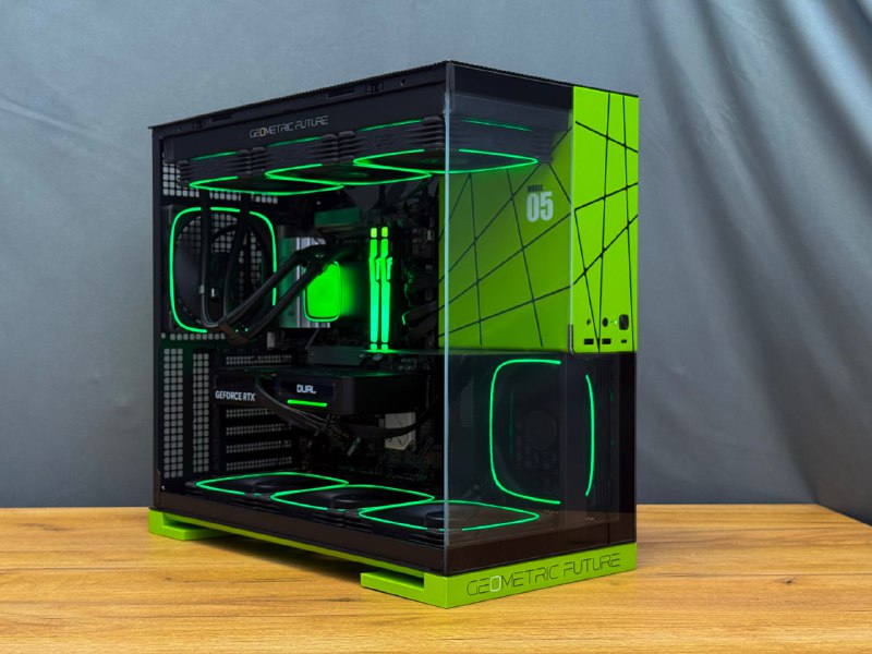 Игровой ПК Geometric без графики — в зелёном цвете. 💚 Эти корпуса обычно есть в наличии в 2–3 цветах. На сайте пока нет выбора цвета, но после оформления заказа мы обычно предлагаем выбрать доступный