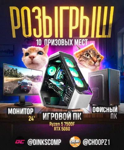 🎁 РОЗЫГРЫШ МОЩНОГО ИГРОВОГО ПК! 🏆 10 призов: 1️⃣Место | ⚡️Игровой ПК Ryzen 5 7500F + RTX 5060 2️⃣Место | Офисный компьютер 3️⃣Место | Монитор 24 дюйма IPS 4️⃣➖5️⃣Место | 1000₽ 6️⃣➖1️⃣0️⃣Место | 50