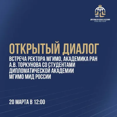 Открытый диалог: встреча А.В.Торкунова со студентами Академии 🔴 20 марта в 12:00 (ауд. 353) состоится встреча Ректора МГИМО МИД России, Академика РАН Анатолия Васильевича Торкунова со студентами Дип