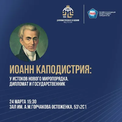Приглашаем на научно-дипломатический симпозиум «Иоанн Каподистрия: архитектор международной дипломатии. От общего прошлого к общему будущему» 🔵Событие приурочено к двум юбилейным датам: 250-летию со