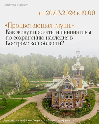🔉 Круглый стол «Процветающая глушь. Как живут проекты и инициативы по сохранению наследия в Костромской области?» 🗓 20 марта в 19:00 Завершающее событие Костромского месяца в Доме Телешова! Мы