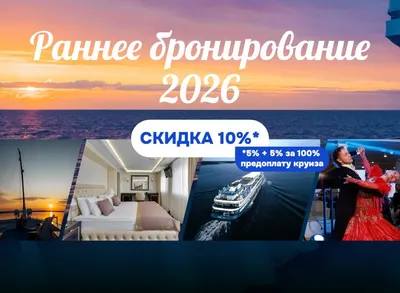 ⚠️ Акция "Раннее бронирование" продолжается ❓ Как забронировать круиз максимально выгодно: 1 Забронируйте до 31.03.2026 г. со скидкой 5️⃣ 🔤. 2. Оплатите сразу полностью, получите дополнительно 5️⃣