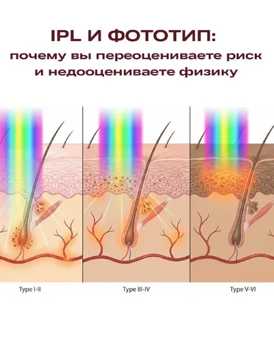 Если вам кажется, что на III–IV фототипах IPL «слишком рискован», вопрос почти всегда не в фототипе. Вопрос в том, что вы не видите конкуренцию хромофоров в момент выбора параметров. И вот это - то
