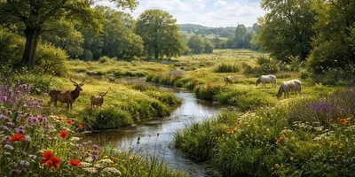Попросили нейросети показать, как выглядит восстановленная дикая природа Британии. Получили набор для вышивания крестиком: холмы, ручейки, олени на закате. Ни одного волка, медведя или рыси. Ни одного