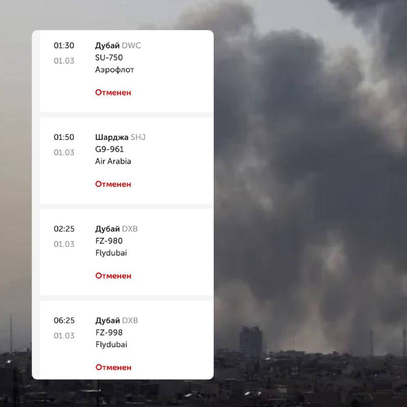 ⛔️ Из Кольцово отменяют рейсы в ОАЭ: небо над Эмиратами закрыто Почти все рейсы из Кольцово в Объединённые Арабские Эмираты временно отменены из‑за ограничений на использование воздушного пространств