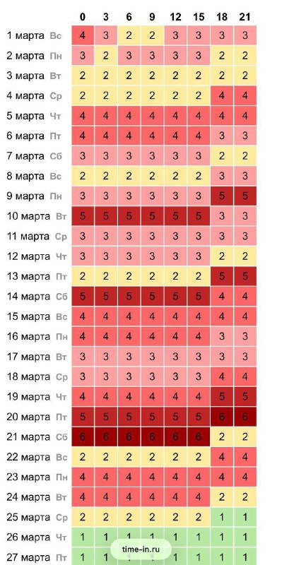 😵💫 Магнитные бури до 6 баллов: прогноз на март В этом месяце Землю накроет серия мощных возмущений геомагнитного поля — они будут достигать 6 баллов. Пиковые периоды: 💫9–10 марта — до 5 баллов