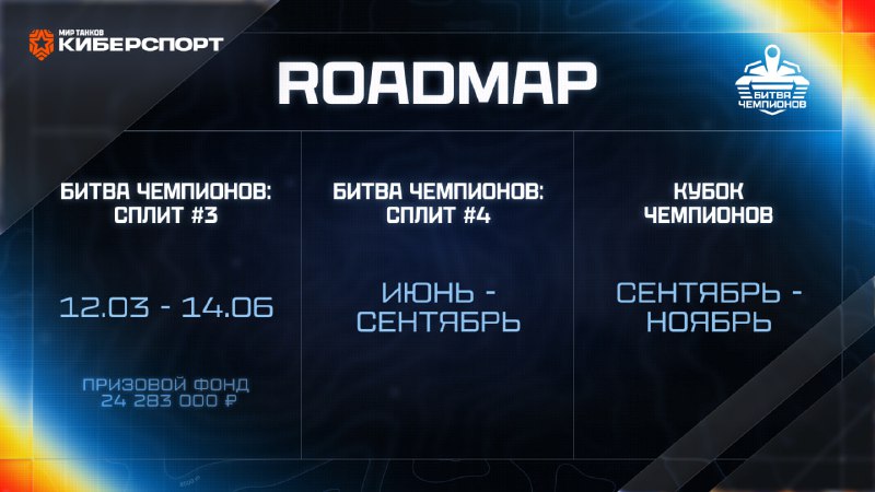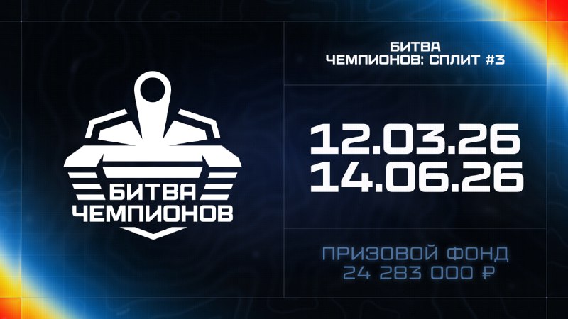 🏆 Стартует «Битва Чемпионов: Сплит #3»! Первый турнир серии в 2026 году пройдет с 12 марта по 14 июня. Команды разыграют 24 283 000 рублей призового фонда. 🗓 Сезон начнется с открытых квалификаций