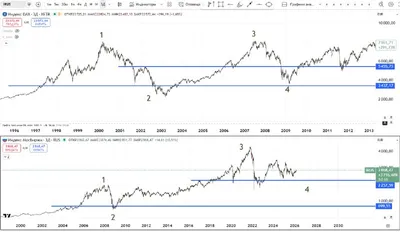 #исследование А вы знаете, что динамика германского DAX с 1986 года повторяется индексом ММВБ с 1996 года? Разрыв 10-15 лет. И даже сегодня динамика индекса ММВБ схожа с динамикой германского индекса